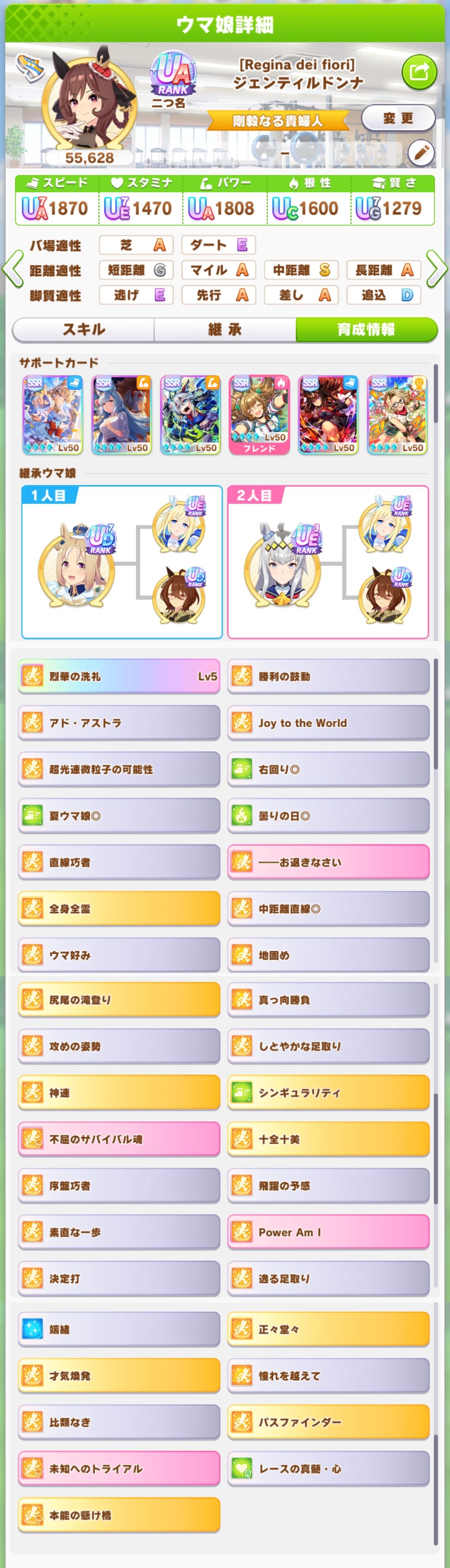 ウインディちゃんのドンナUA乗らなかったけどスキルいい感じだから採用なのだ