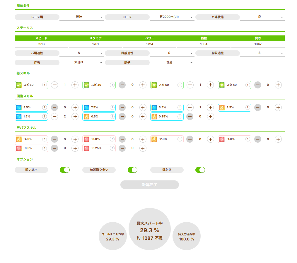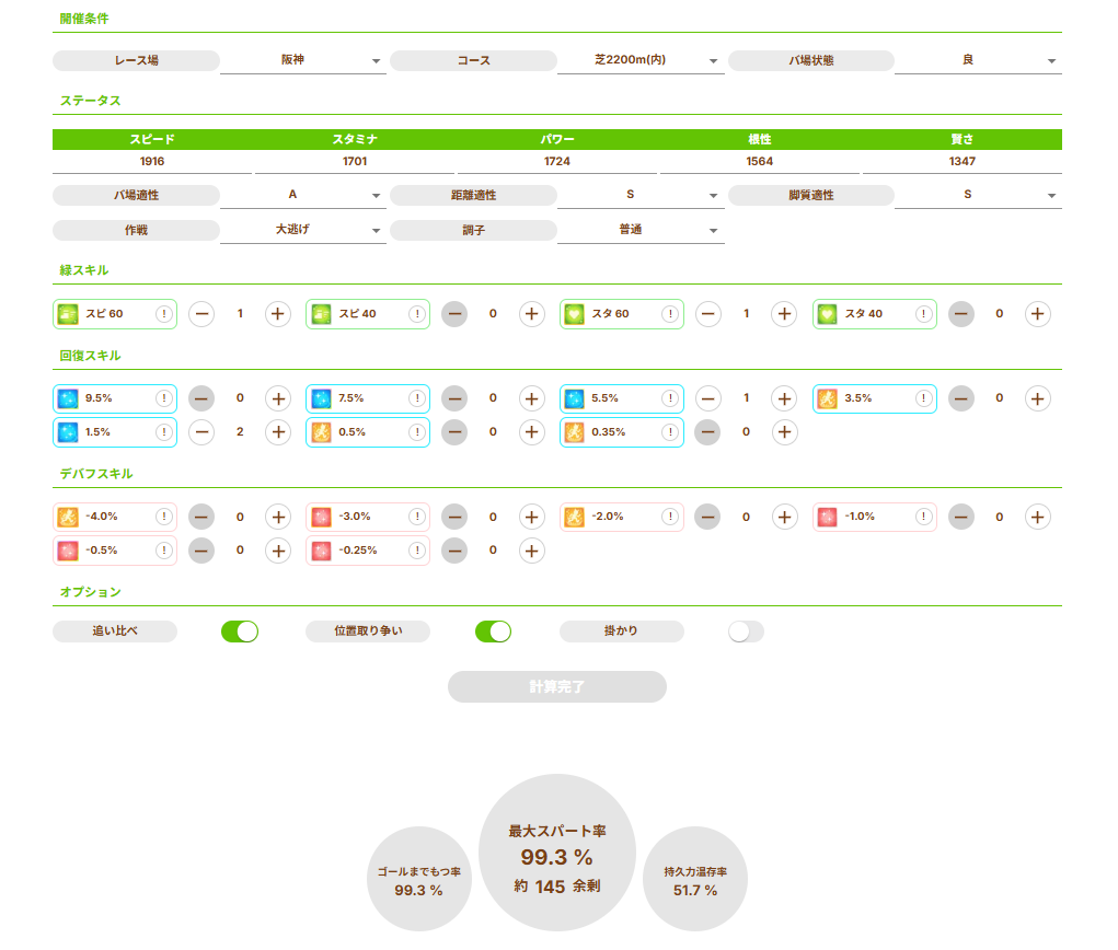 これが京都2200だったらスタ1700金回復2で体力足りてねーのだ