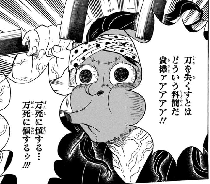 てめえのなまくらのせいもあって死にかけた炭治郎相手に包丁腰溜めで突撃してくるこいつはもう