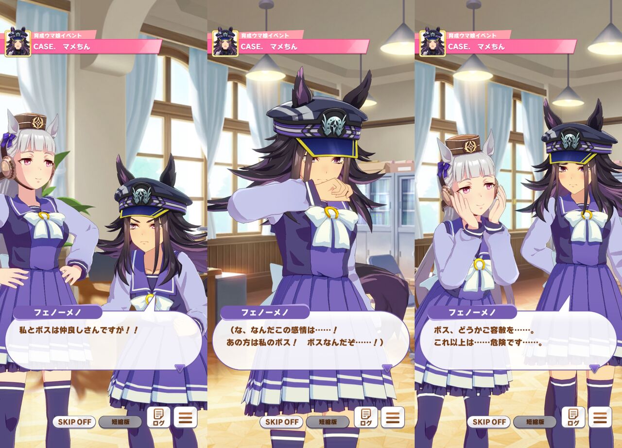 ほぼキャピキャピしておふざけしてるゴルシと比べるとマメちんは最初から最後まで全力だな