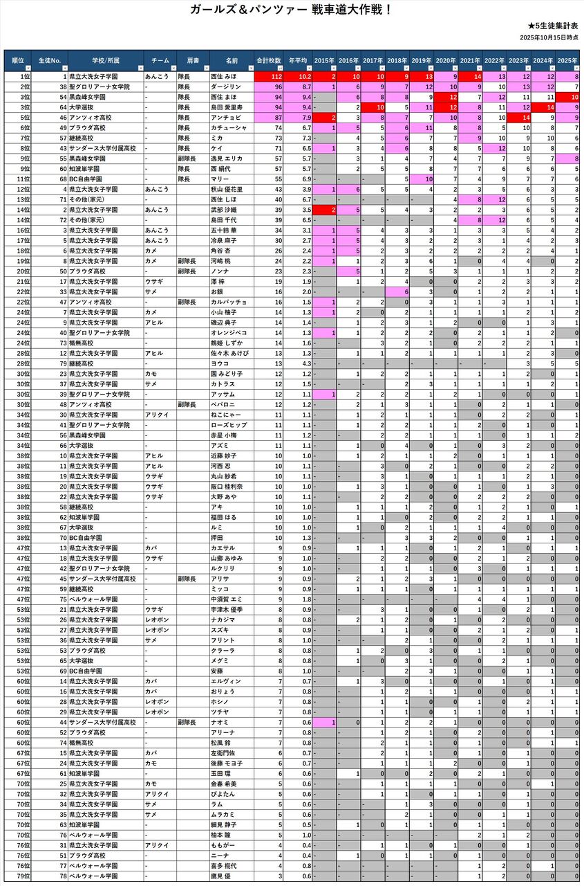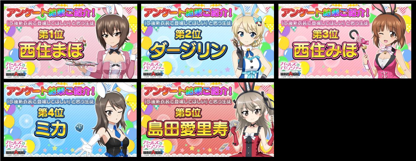 >>1614位が愛里寿で5位6位でアンチョビミカがほぼ同じくらいかと思ってた