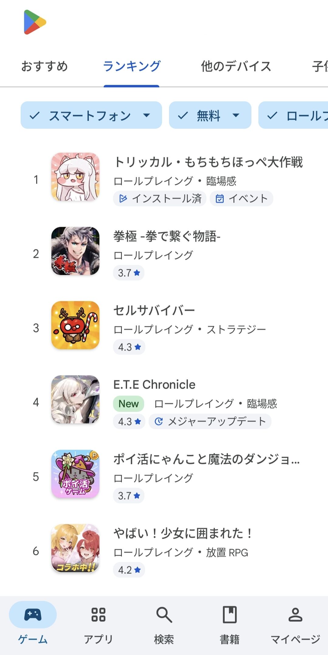 ロールプレイングカテゴリが弱いだけかと思ったらブルアカとかNIKKEIとか大半の有名ソシャゲが属してるとこにゃんね
