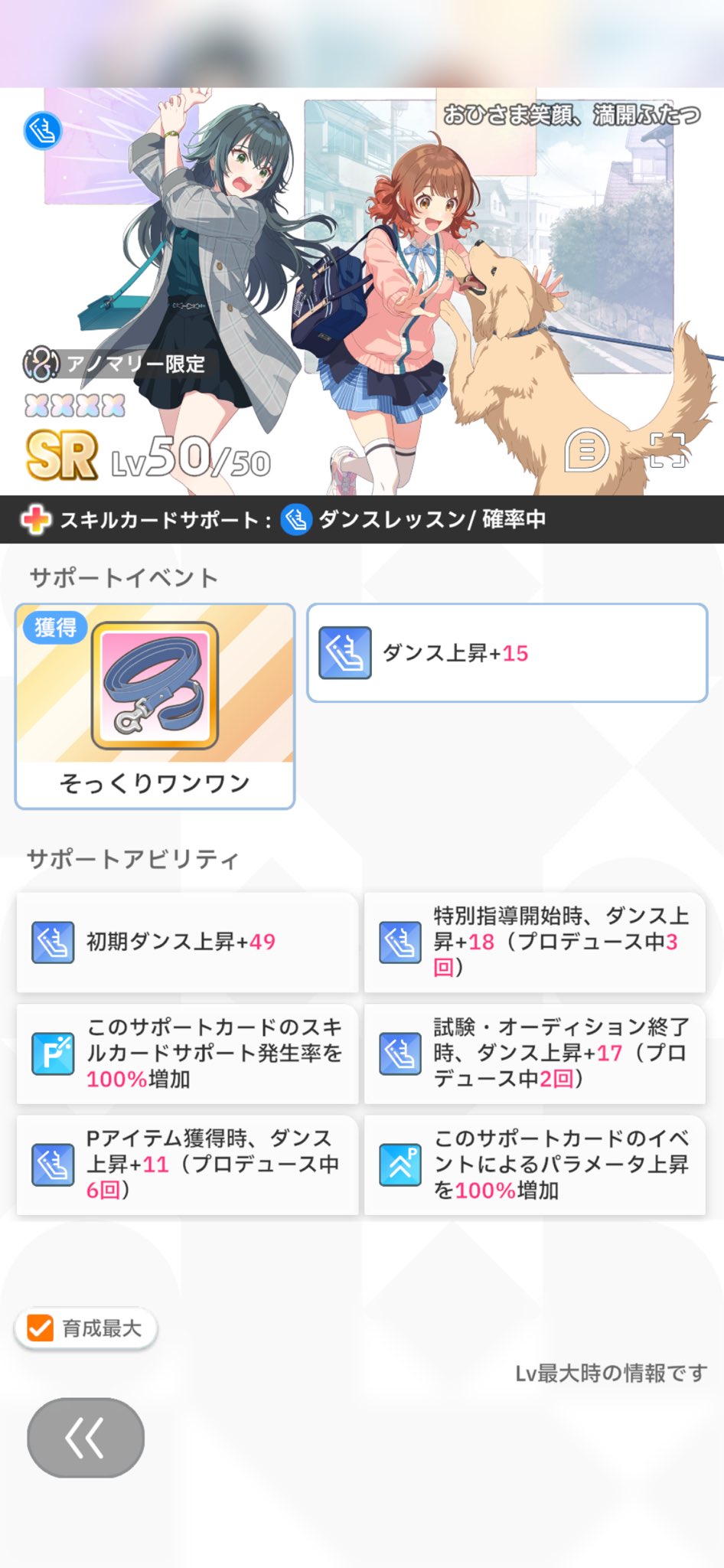 はじめたばかりならとりあえずSPレッスン発動率アップついてる奴育てておけばいいですわ