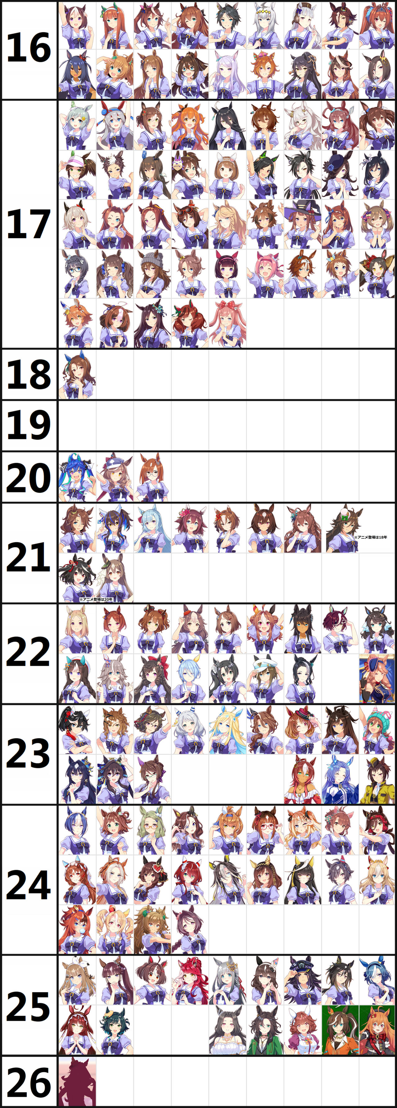 ちなみにシングレ組は20年に出てたけど公式サイトに追加されたのはアプリ配信後だったりする
