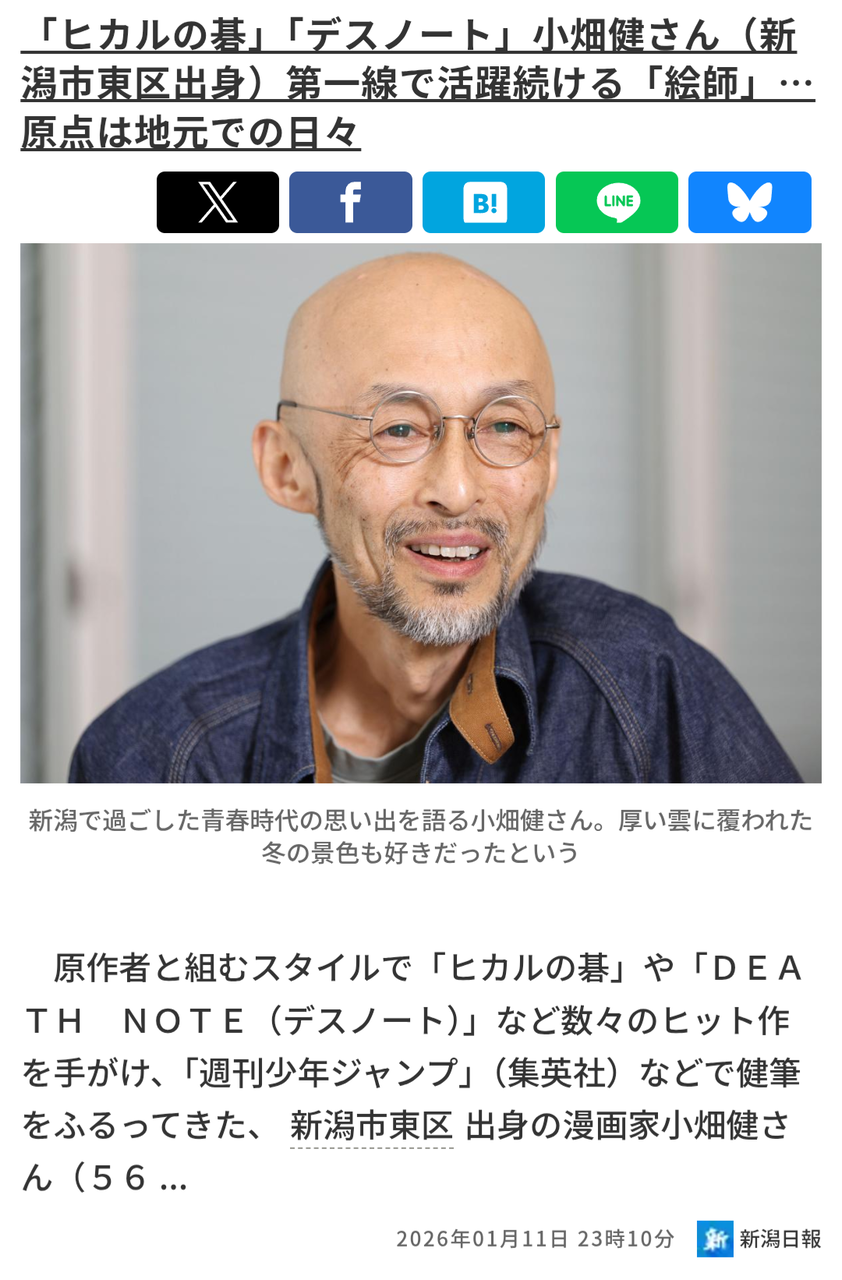 【漫画家】小畑健の顔初めて見た… 2026年01月18日 カテゴリ:漫画家漫画 1: 名無しさん26/01/14(水)22:28そうだねx40漫豪の風格あるな… 4: 名無しさん26/01/14(水)22:30そうだねx8>>1元祖漫豪に似てるわ… 67: 名無しさん26/01/14(水)23:14>>1顔じゃなくて頭見て言ってない? 2: 名無しさん26/01/14(水)22:28そうだねx7自画像の通りだね 3: 名無しさん26/01/14(水)22:29そうだねx4古びた居酒屋で一杯やってそう 続きを読む タグ :#漫画家